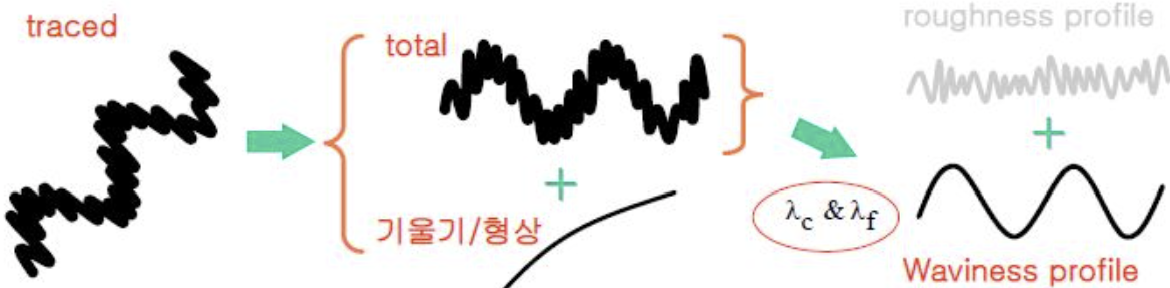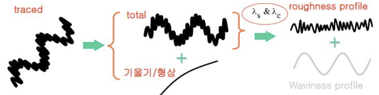 👉 측정된 신호 그 자체(traced profile)는 아직 ‘거칠기’가 아니라는 것이다.