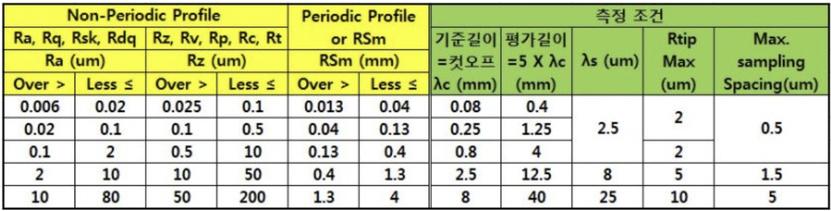 원하는 거칠기 값 범위에 따라 표준 표를 참고하여 결정합니다.